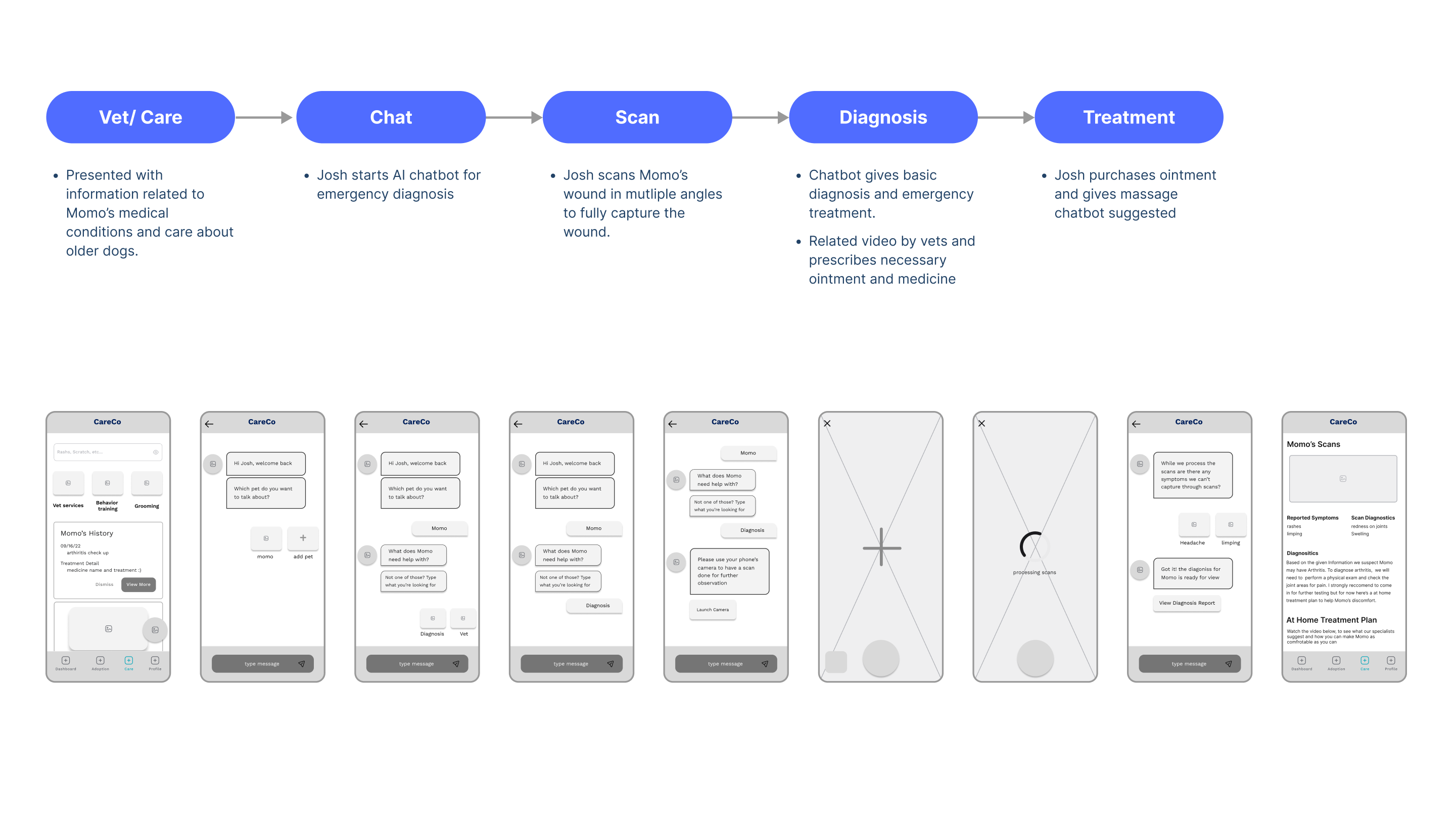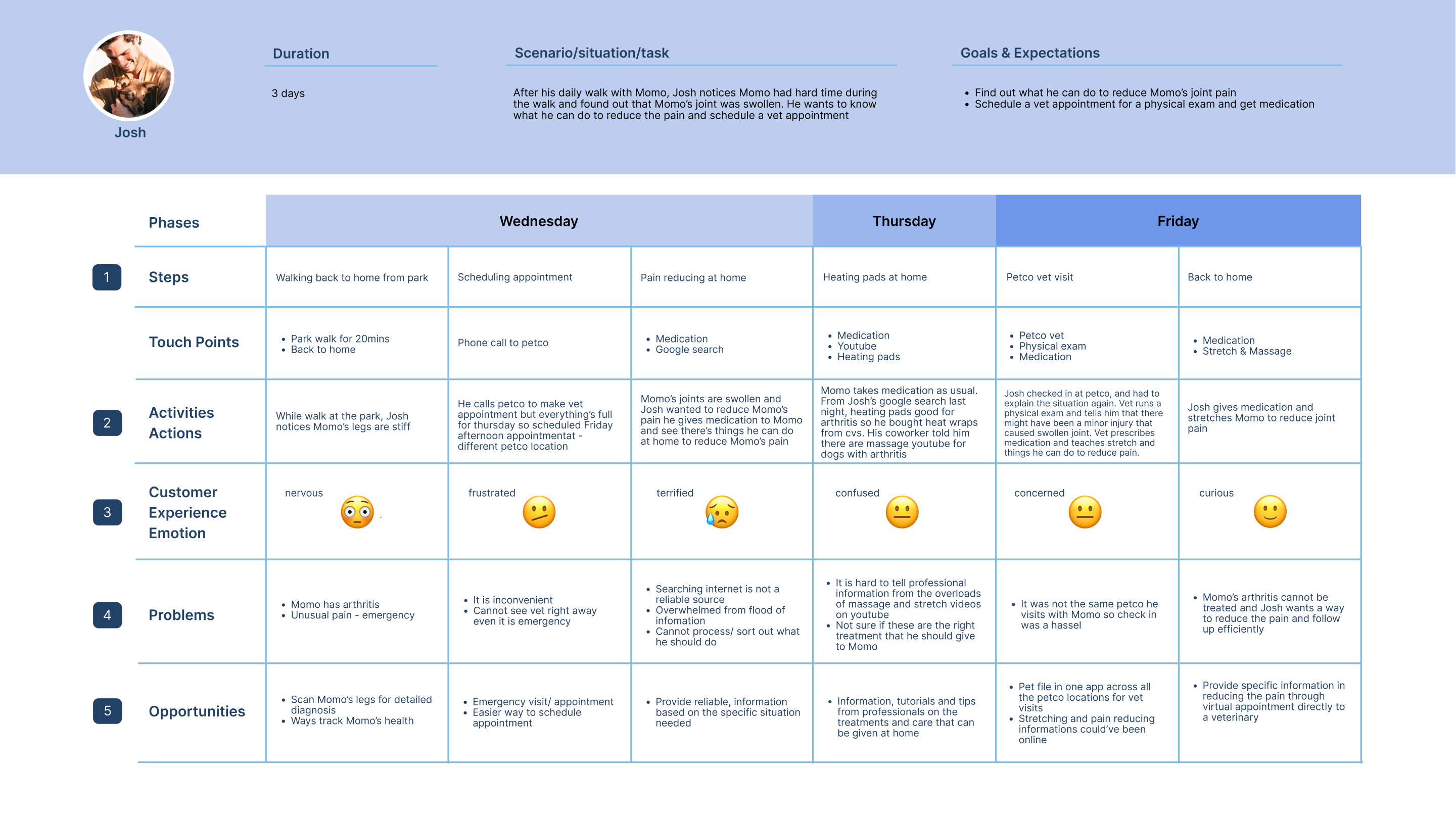 By interviewing pet owners and a vet, we found that owners tend to learn along the way, instead of understanding everything in the beginning. They also feel tensed about expensive vet visits.