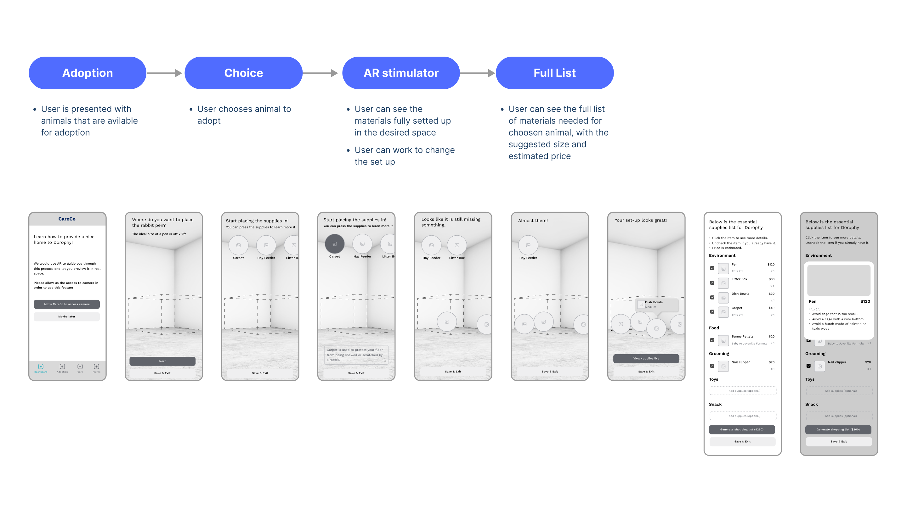 Our team proposes a new app powered by Petco that incorporates AR, gamification, and AI technology to guide owners through pet care in a digestible and enjoyable manner.