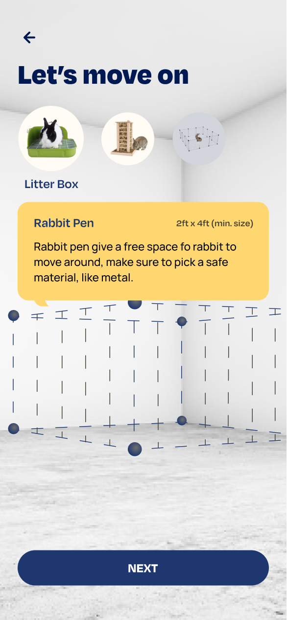It is sometimes hard to envision how much space a pet needs and how it may look in your house. With the help of AR, users could learn about the proper environment setup while having fun designing and visualizing it.