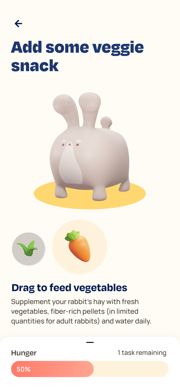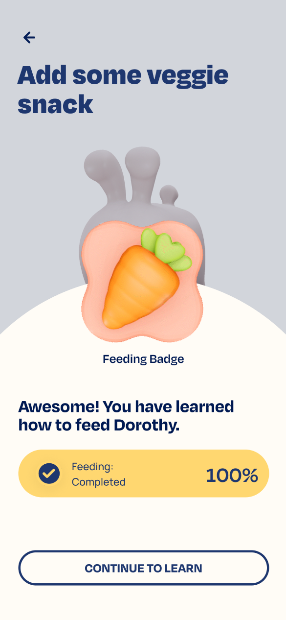 The best way to learn is through experience and practice. Interact directly with a virtual pet to learn about feeding, cleaning, and grooming. Users are rewarded with badges when they finish each section to keep them motivated.