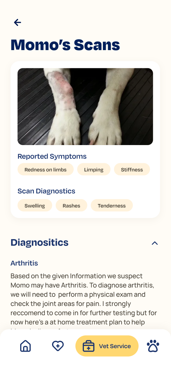For current owners who are worried about their pet's health, the AI diagnosis chatbot will help to give a brief diagnosis based on the survey, photos, and even video the owner uploads.