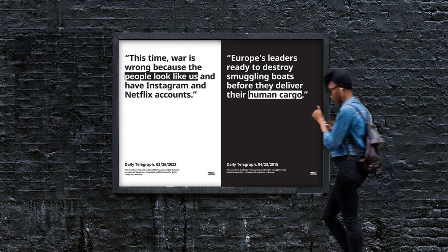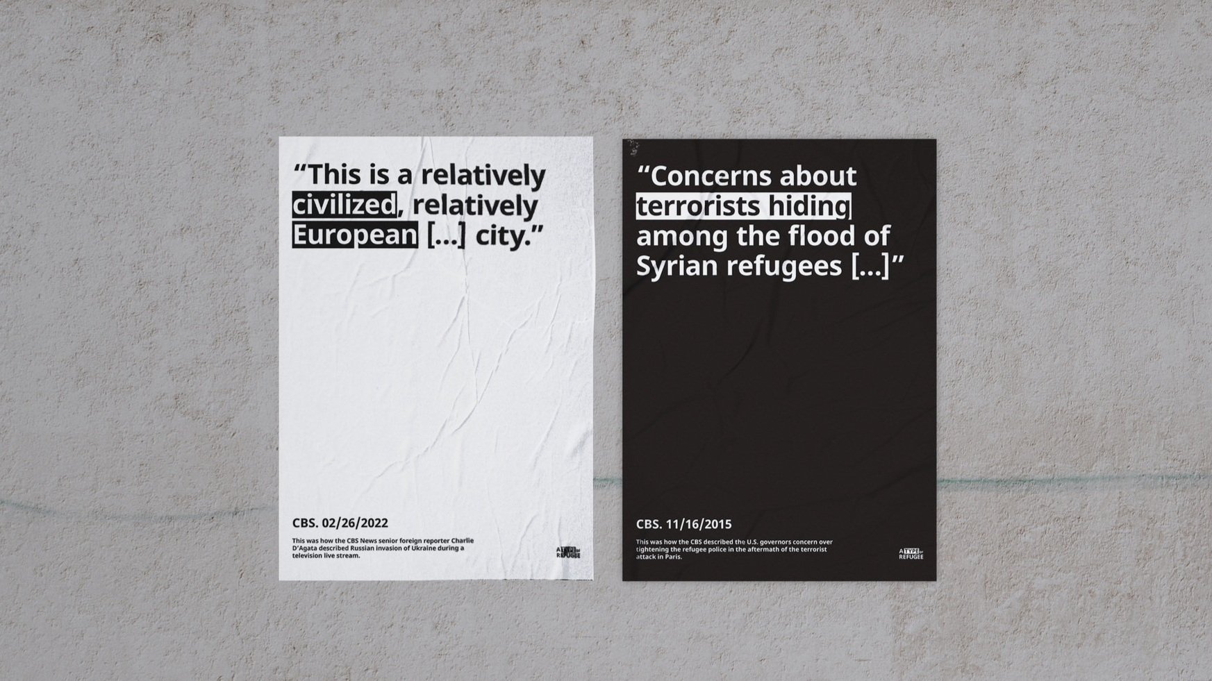 To create a typographic campaign that shows the undeniable and shocking rhetoric contradictions of media channels. It will also bring to light the unfiltered stories of the refugees to challenge the viewer's stereotype.