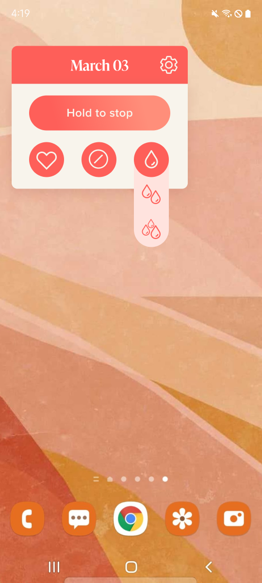 Ashley needs a way to keep a record of their period history consistently without spending an extensive amount of time on it and/or forgetting. They are going to set up the widget on their phone, and input their period information.
