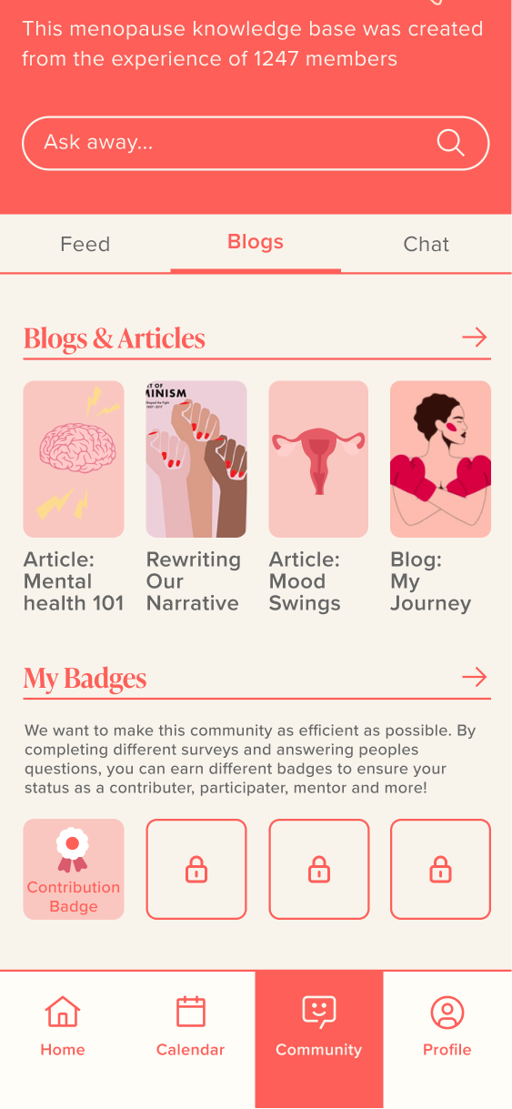 For women who may feel alone when their bodies are going through drastic change, like menopause, a community is built for them to feel less alienated. They can relate and gain insight with others going through similar experiences.